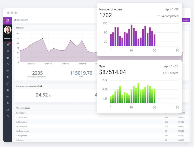 Menu management and accurate ordering statistics will help you create the best online menus for customers.